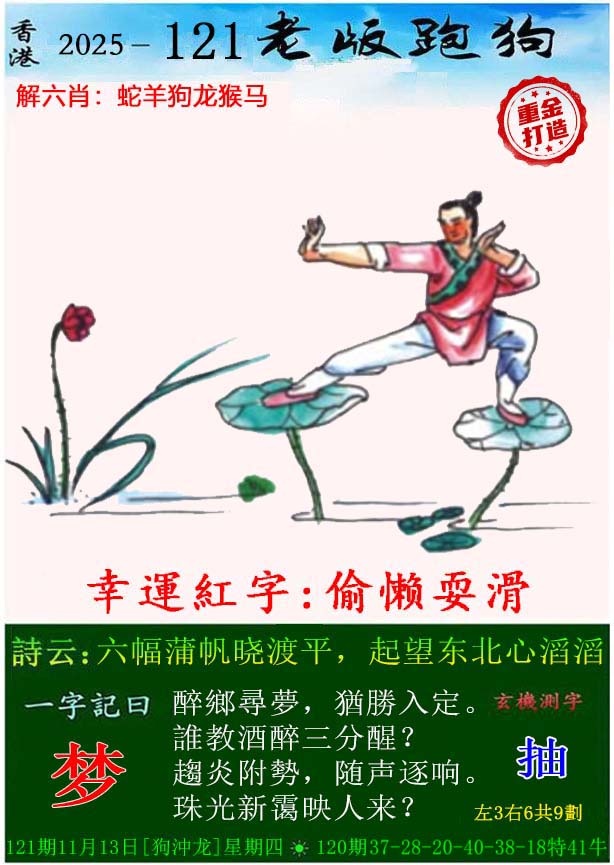 玄机詩雲: 六幅蒲帆晓渡平,起望东北心滔滔。醉鄉尋夢,猶勝入定。誰教酒醉三分醒?趨炎附勢,随声逐响。珠光新霭映人来?